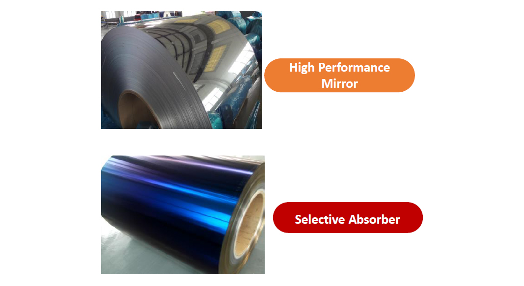 ---High selective solar absorber”Thermol Collector”is manufactured by first class PVD coating devices which achieve absorptive rate up to 95% and heat emission lower than 5%.(accessory of solar collector)