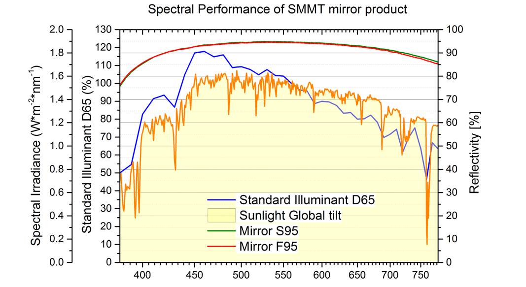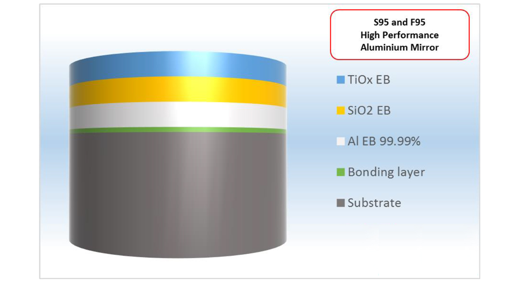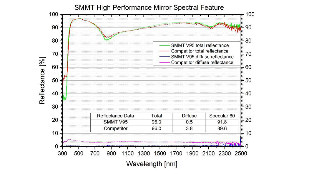 ---High performance AI mirror products S95 and F95 are specially designed to have an optimized reflection for the visible light(VIS)spectra with top values higher than 95%.